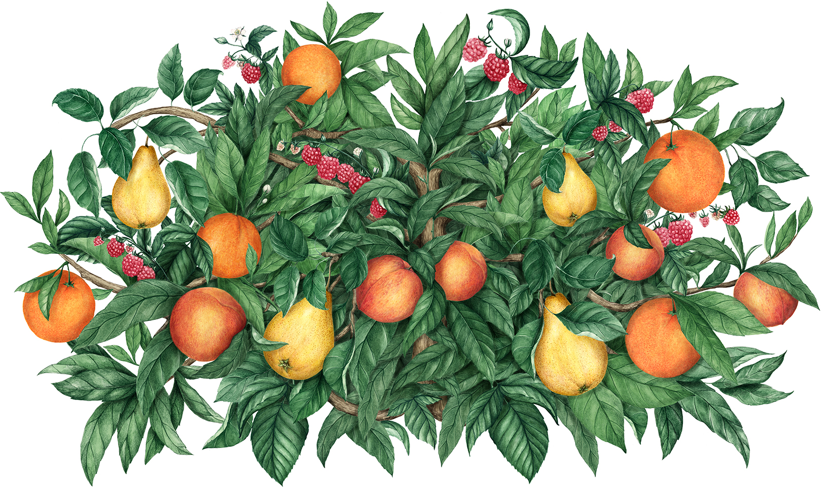 Illustration for a new advertising campaign of Compal Summo, showcasing all its product flavors. This illustration marks the second stage of a project previously developed for this brand, which also featured botanical illustrations.