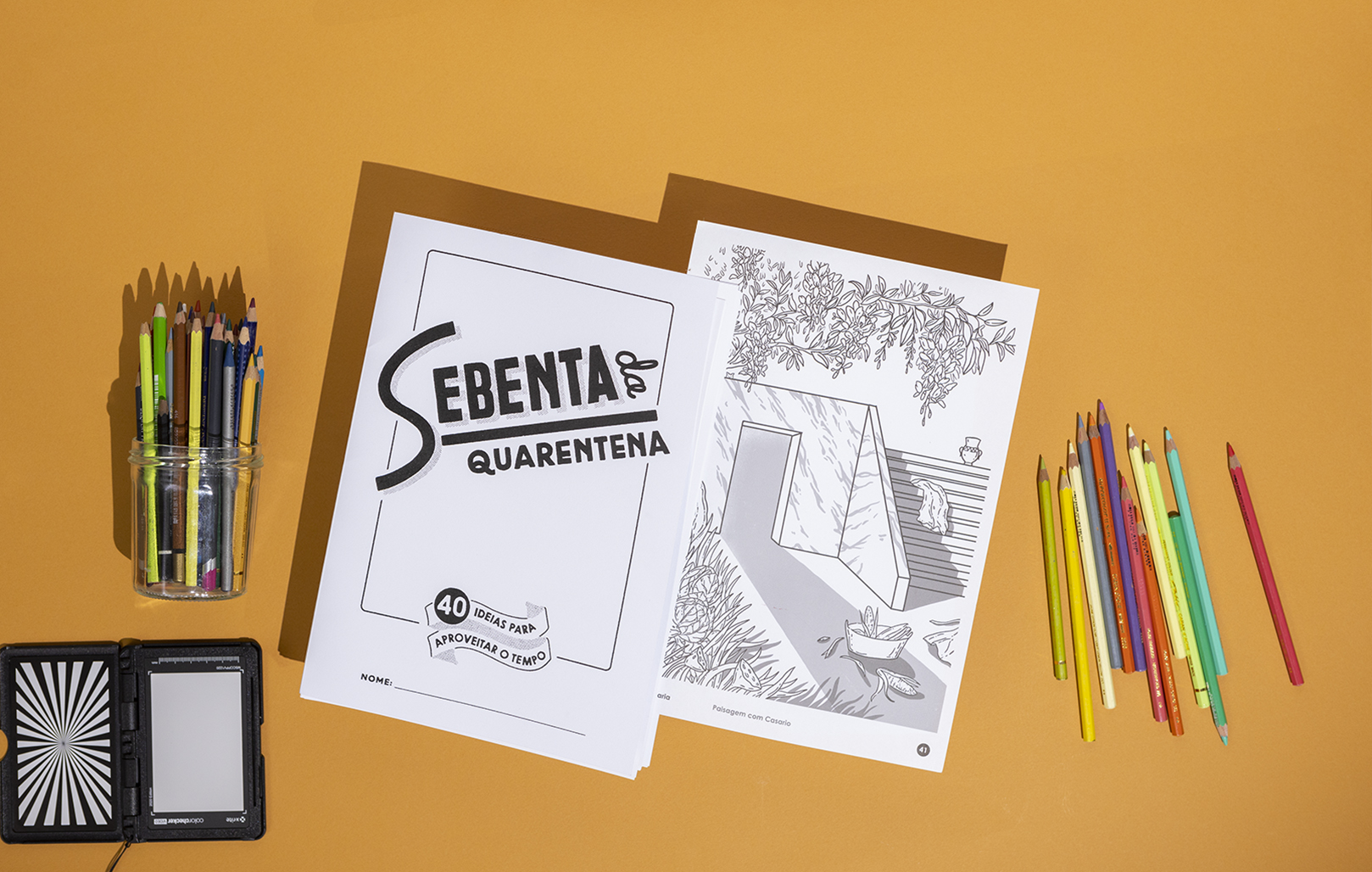"Sebenta da Quarentena" is an activity book designed for both children and adults, created by different authors and artists. Here, my illustration "Paisagem com Casario" was presented as a line drawing, allowing people to freely color it in.